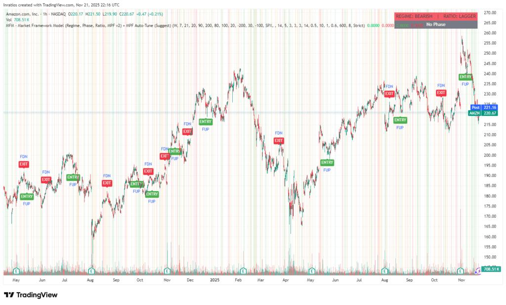 The Market Framework Model (MFM) and all related materials are provided for educational and informational purposes only. Nothing in this publication, the indicator, or any associated charts should be interpreted as financial advice, investment recommendations, or trading signals. All examples, visualizations, and backtests are illustrative and based on historical data. They do not guarantee or imply any future performance. Financial markets involve risk, including the potential loss of capital, and users remain fully responsible for their own decisions. The author and Inratios© make no representations or warranties regarding the accuracy, completeness, or reliability of the information provided. MFM describes structural market context only and should not be used as the sole basis for trading or investment actions.