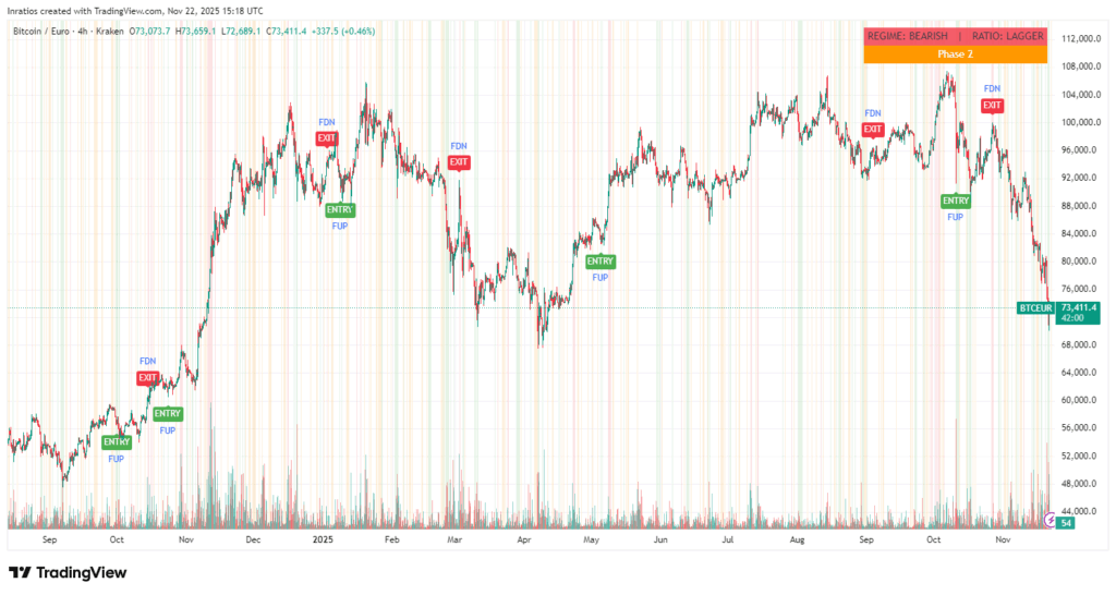 The backtests confirm that Phase 1, Phase 2 and Phase 3 each express a characteristic behavioral signature that remains stable across instruments such as SPX, NVDA, Gold, BTC and XRP.